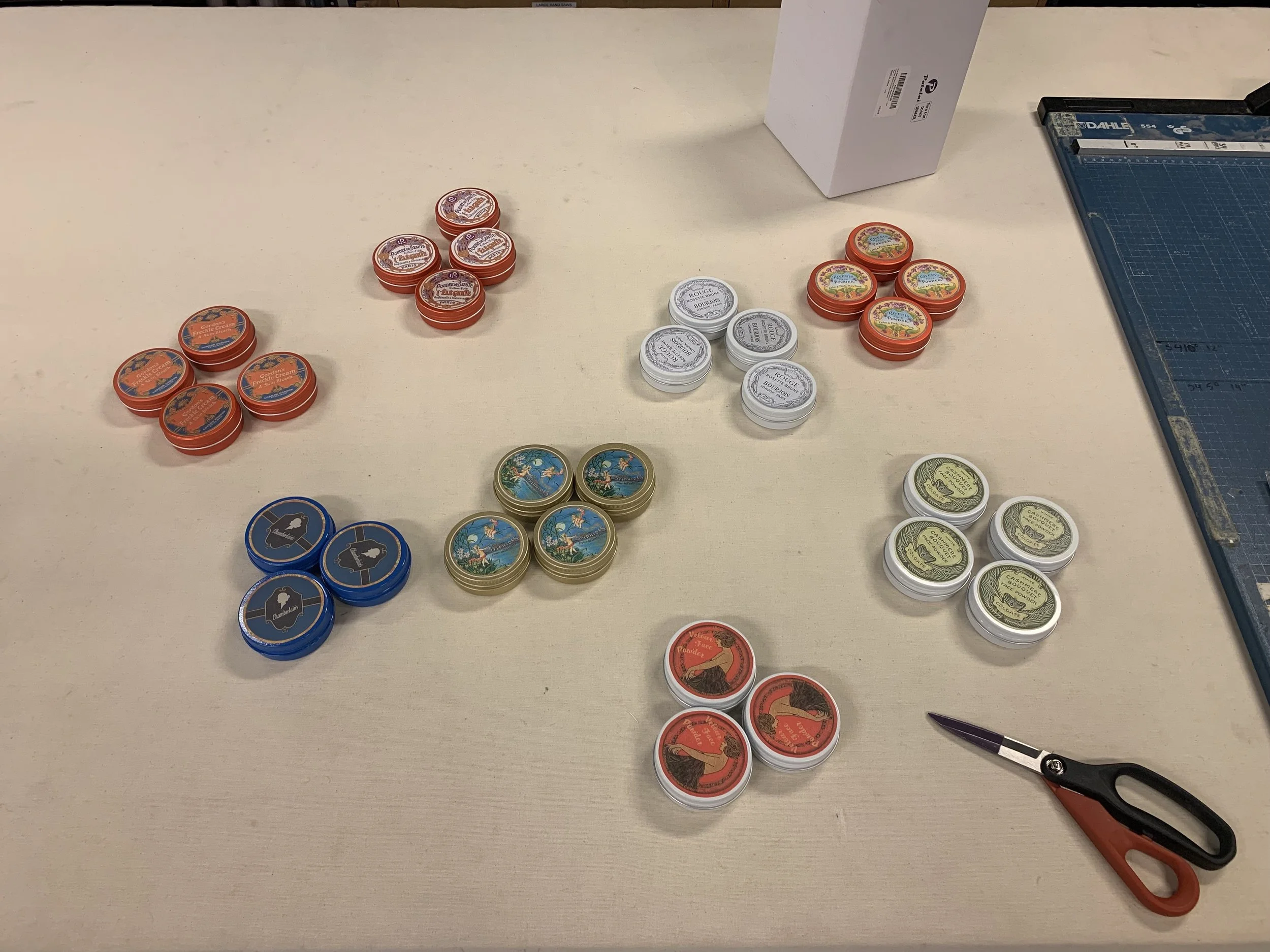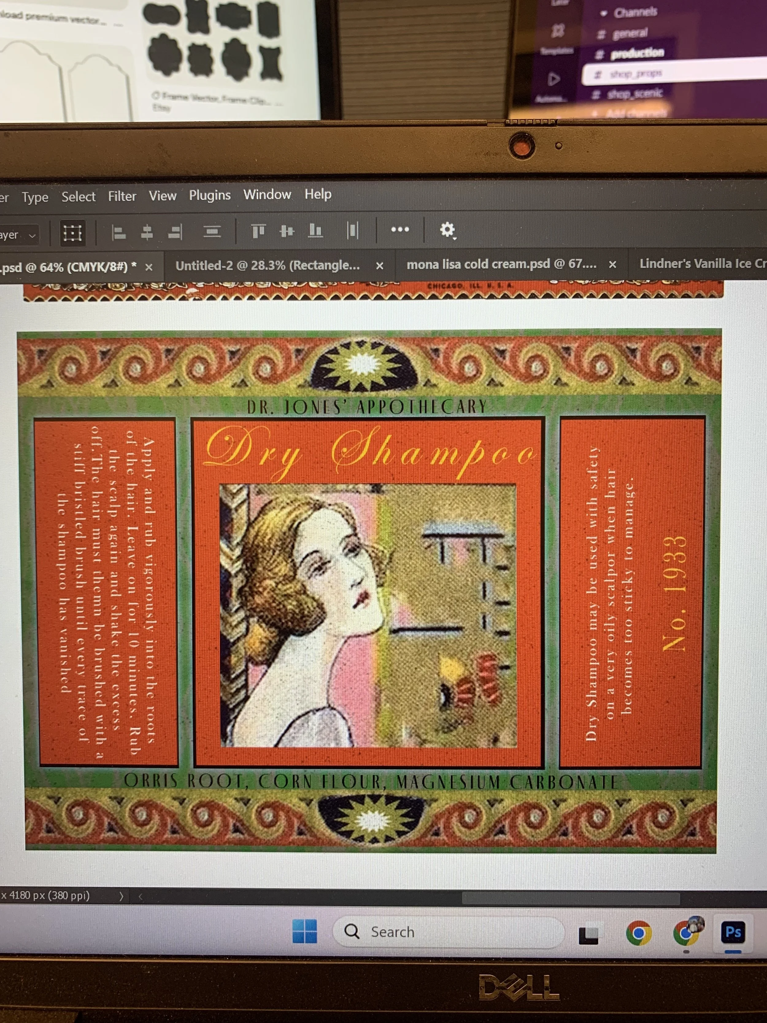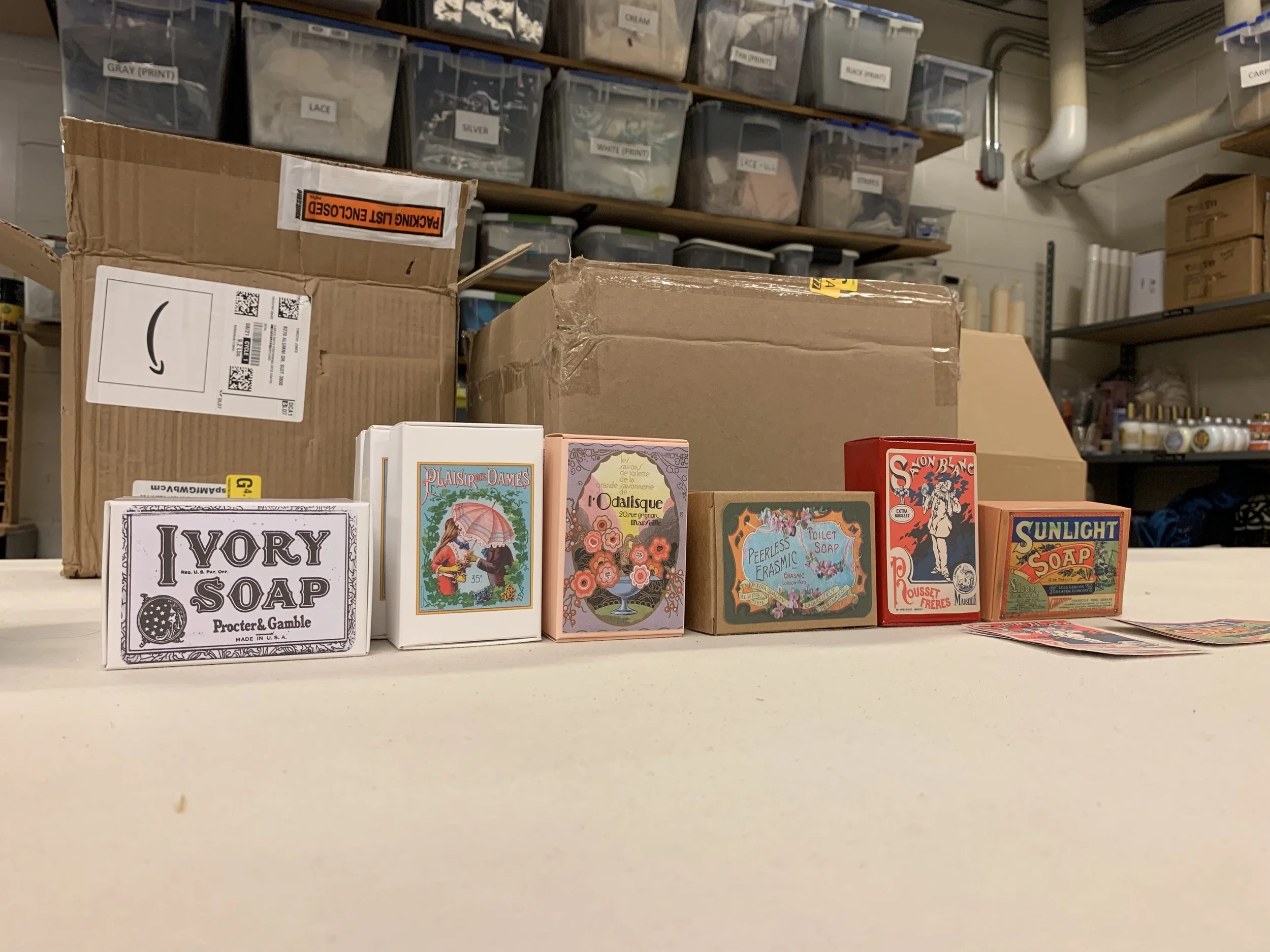 A collection of labels for vintage cosmetics products made for a production of She Loves Me (University of Maryland). Each label was sourced online and then brought into Photoshop to be adjusted and scaled. They were then printed on sticker paper, cut out, and stuck onto their respective bottle, box, or container.