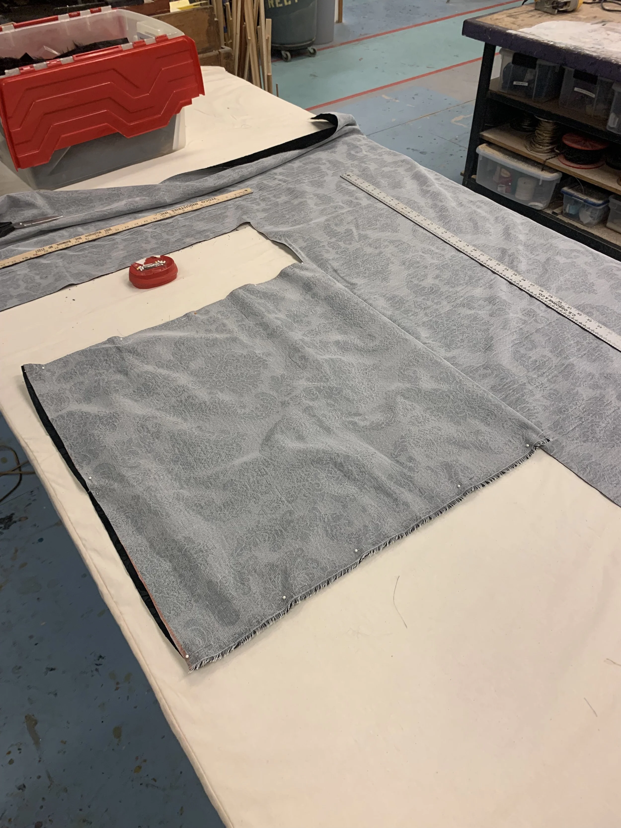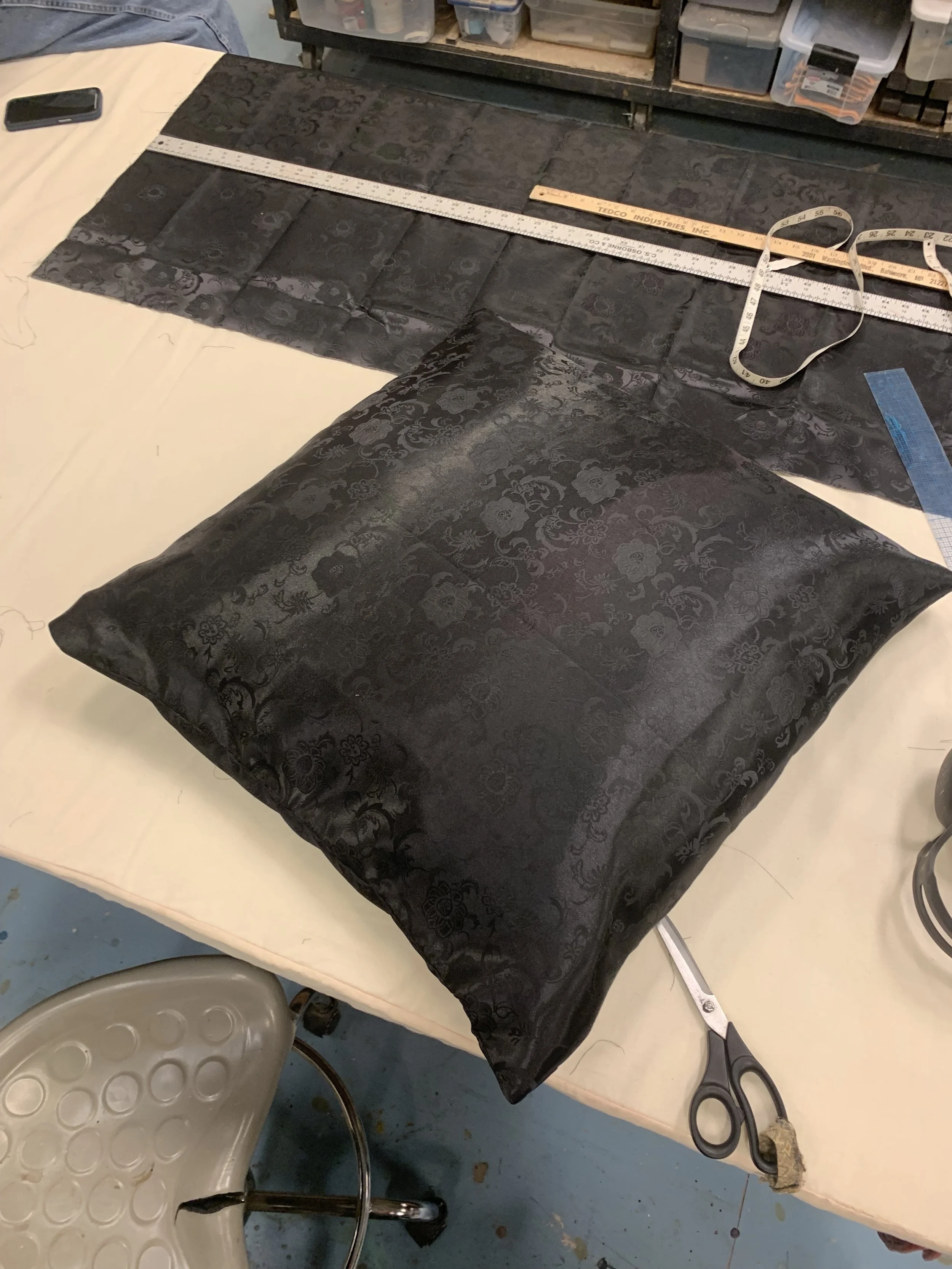 Pillow cases made to cover existing pillows. These pillows were used as audience seating in a dance performance (University of Maryland)